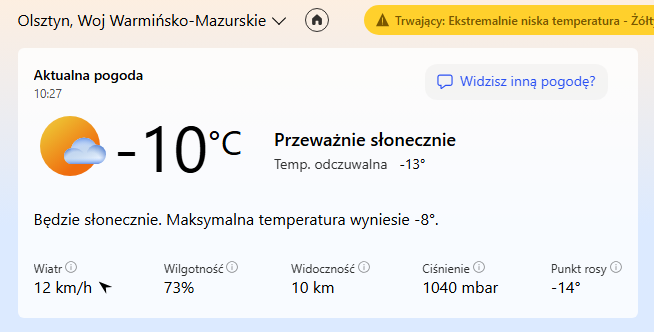 To nie te -10 się liczy tylko odczuwalne -13. Człowiek chociaż znowu wie, że zima istnieje! ![]()