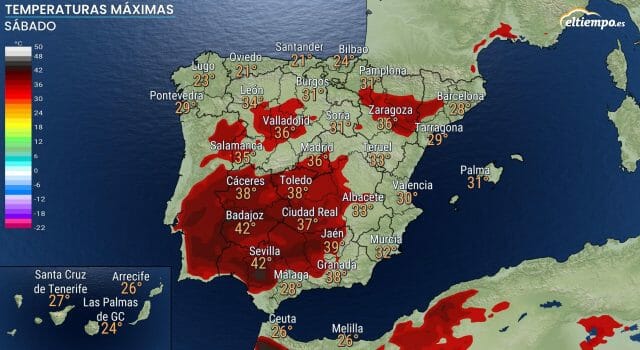 latem takie temperatury to normalne, gorzej jest w dolinie smierci, przepraszam dolinie rzeki Guadalquivir (Sevilla) i w tzw. interiorze (Toledo, Extremadura, Madryt) gdzie jak przygrzeje to w nocy nie schodzi ponizej 30º, a w dzien to lepiej termometru na slonce nie wystawiac, bo zwykle ma skale do 50º.