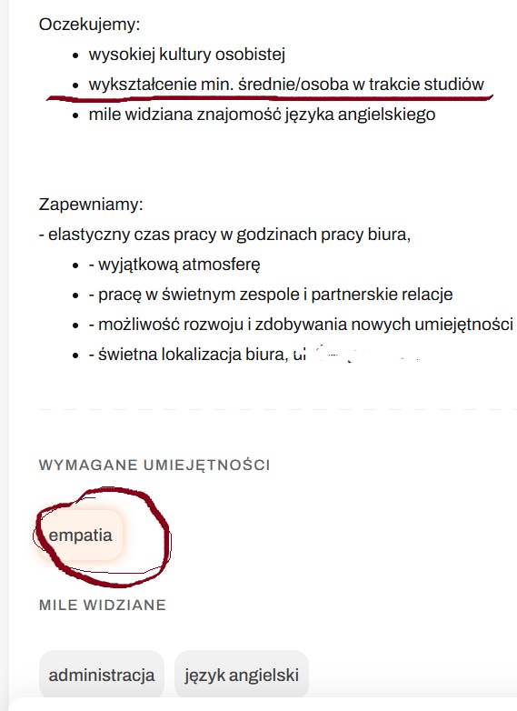 Tylko empatie trzeba miec swoja, bo jak wiadomo pracodawca nie musi, bo placi.