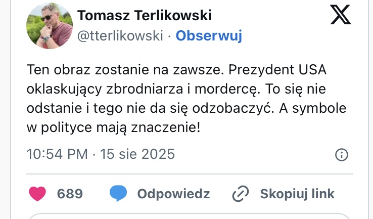 Bardzo smutna prawda jest taka, że obecnie jesteśmy w czarnej doopie, ot co. Pomimo niezrealizowanych pierwotnych planów, Putin de facto przystępuje do tych rozmów w roli strony wygranej, choćby nie wiem jak bardzo miałoby się nam to nie podobać. Wszak zdobycze terytorialne są wyłącznie po stronie Rosji, która to swoją drogą miała militarnie upaść najpierw po roku od rozpoczęcia wojny, potem po dwóch… że nie wspomnę, ileż to już razy miała zbankrutować, miało tam zabraknąć rakiet, amunicji, czołgów, samolotów, żołnierzy, zachodnich samochodów, hamburgerów … … … … papieru toaletowego i powideł śliwkowych. Takimi wizjami karmiły, mamiły i otumaniały nas media od początku wojny. A tym czasem Rosja jest zdolna, zwarta i gotowa kontynuować wojnę w okresie mierzonym ruskimi miesiącami. W tym momencie to od ”dobrej” woli Rosji zależy, czy i kiedy ta wojna się zakończy. Natomiast Ukraina bez pomocy państw zachodu, a zwłaszcza USA, nie jest w stanie na dłuższą metę obronić się przed ruską nawałą. Militarnie, poza atomem, nie ma obecnie i dłuuuuuugo jeszcze nie będzie w Europie takich zasobów, które pozwoliłby wydrzeć zagrabione ziemie, nie wspominając o zasobach ludzkich Ukrainy. O mrzonkach jakiejś ofensywny nie ma co nawet wspominać, bo moment na to został przez koalicję antyrosyjską dawno temu przespany, w dużej mierze zdaje się celowo. Odnośnie owej pomocy nie da się nie zauważyć, że coraz bardziej zaczyna ona wszystkim ciążyć. Obecnie trwają dyskusje na dziewiętnastym (!!!), nic niedającym pakietem sankcji. Przed kamerami europejscy rządzący butnie wyrażają swą niechęć do Putina, wytykają Trumpowi, że z terrorystą się nie negocjuje, ale jednocześnie ma się nieodparte wrażenie, jak z utęsknieniem wyczekują momentu, ”żeby było jak było”. Niemieccy politycy już jakiś czas temu publicznie wypowiadali się, że po wojnie rosyjski gaz pomógłby ich gospodarce i panuje tam w tej kwestii ponad polityczny konsensus. Obroty handlowe Europy z Rosją od jakiegoś czasu systematycznie rosną, że nie wspomnę o masowym imporcie wiadomego pochodzenia ropy z Kazachstanu do europejskich rafinerii, itp., itd. Europa tłamsząc własną gospodarkę Zielonym ładem, chwyta się wszelkich sposobów, by sobie ulżyć. Można odnieść wrażenie, że na handlu z Rosją co niektórzy zarabiają na pomoc Ukrainie. Normalnie perpetuum mobile. Tutaj nie dziwię się Trumpowi, że tak bezprecedensowo dąży do zakończenia tej wojny wobec faktu, że to Stany są głównym sponsorem obronności Ukrainy, natomiast Europa w coraz większym stopniu dorzuca fundusze do skarbczyka Putina. Ja bym się wkoorwił.