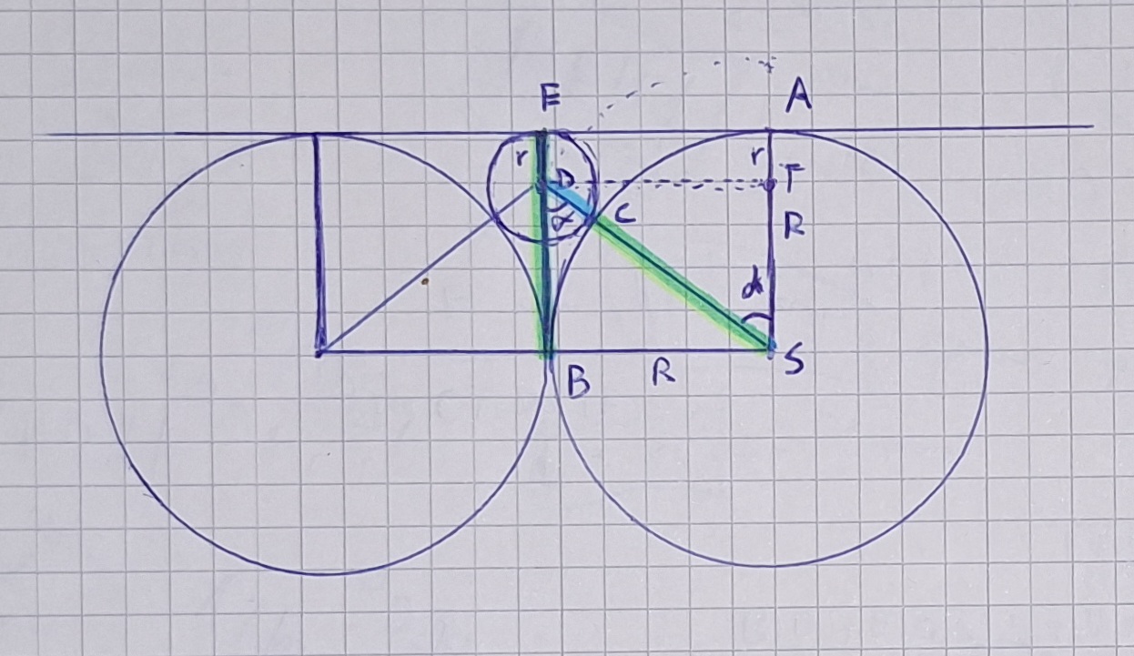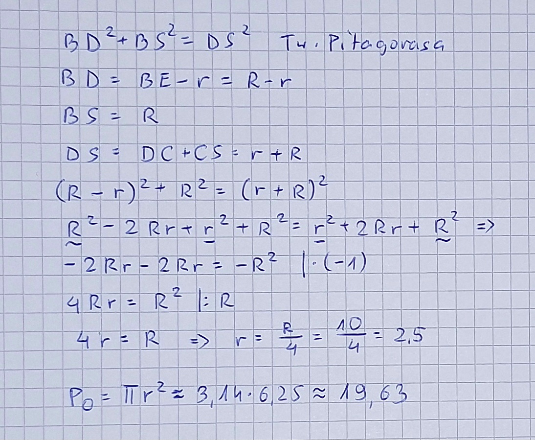 Przy pomocy porządnie naostrzonego temperówką cyrkla i kalkulatorka smartfonowego obliczenie powierzchni zaznaczonego na zielono pola nie powinno stanowić problemu
