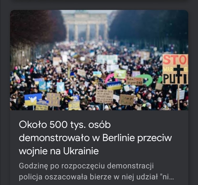 500 000 obywateli to znaczy że przeciętnie co 10 osoba w Berlinie wyszła z domu, by zademonstrować swój sprzeciw wobec wojny w Ukrainie.